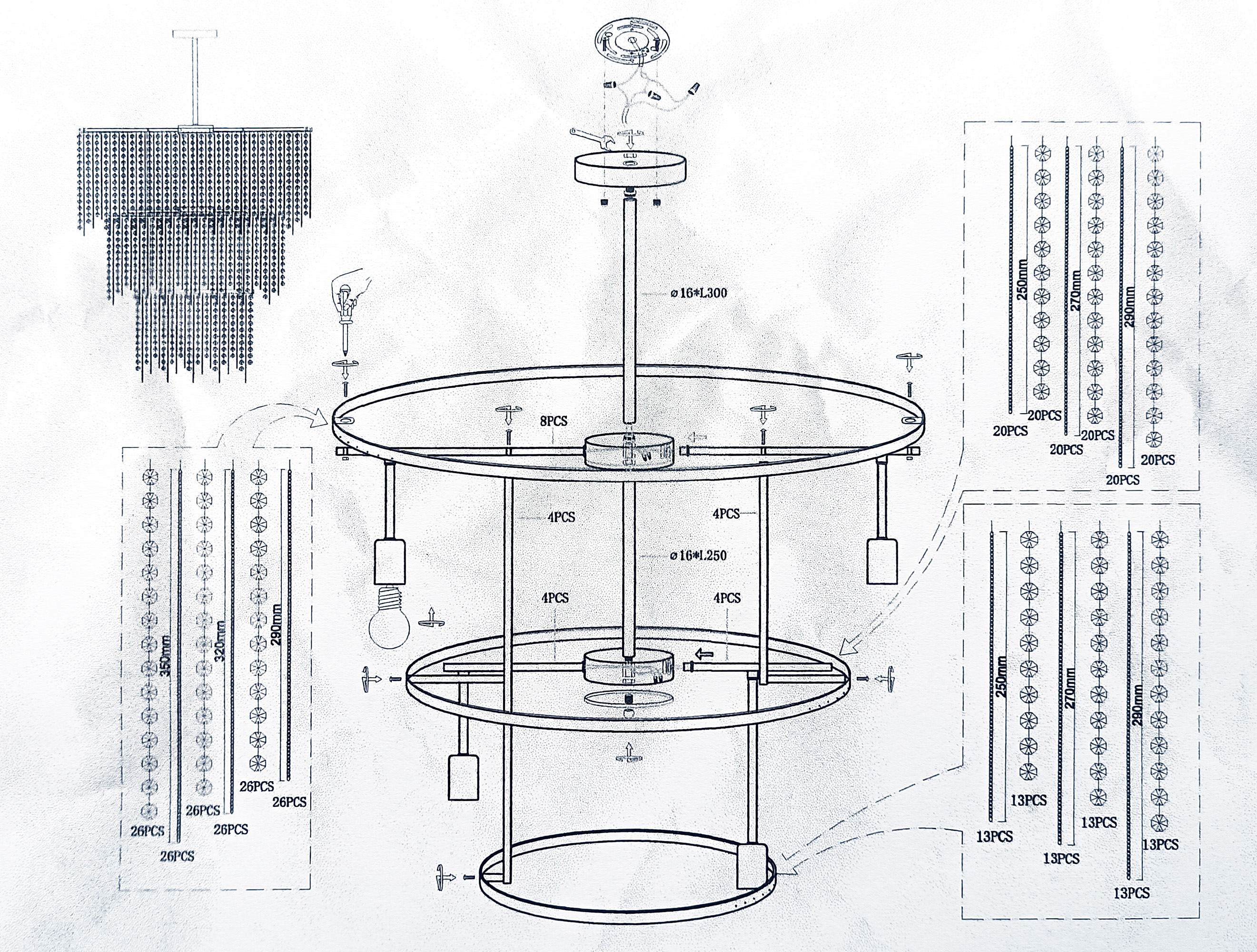 Lampa do samodzielnego montażu, nie zawiera żarówek w komplecie.